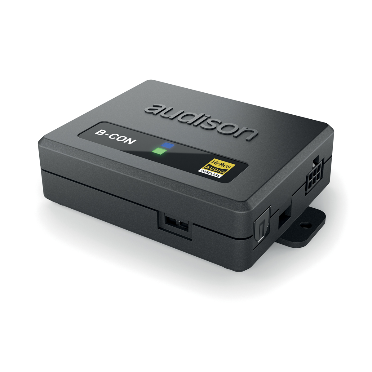 The Audison B-CON is the only Bluetooth 5.0® receiver designed for automotive use that has obtained the “Hi-Res audio wireless” certification from JAS (Japan Audio Society). B-CON is the ideal choice for streaming audio from a Hi-Res player (FIIO, Sony Walkman…) and from the latest generation Android/Apple mobile devices, fully supporting the car’s Hands-Free Bluetooth profile.