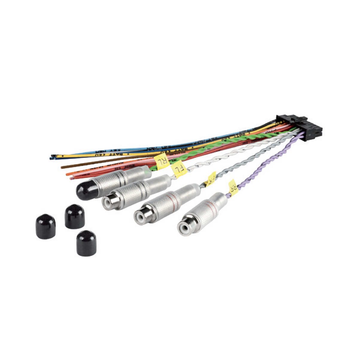 RCA connector for effortless and fast connections between the head unit PRE OUTs (2 V min.) and bit Ten, bit Ten D Hi-Level inputs.