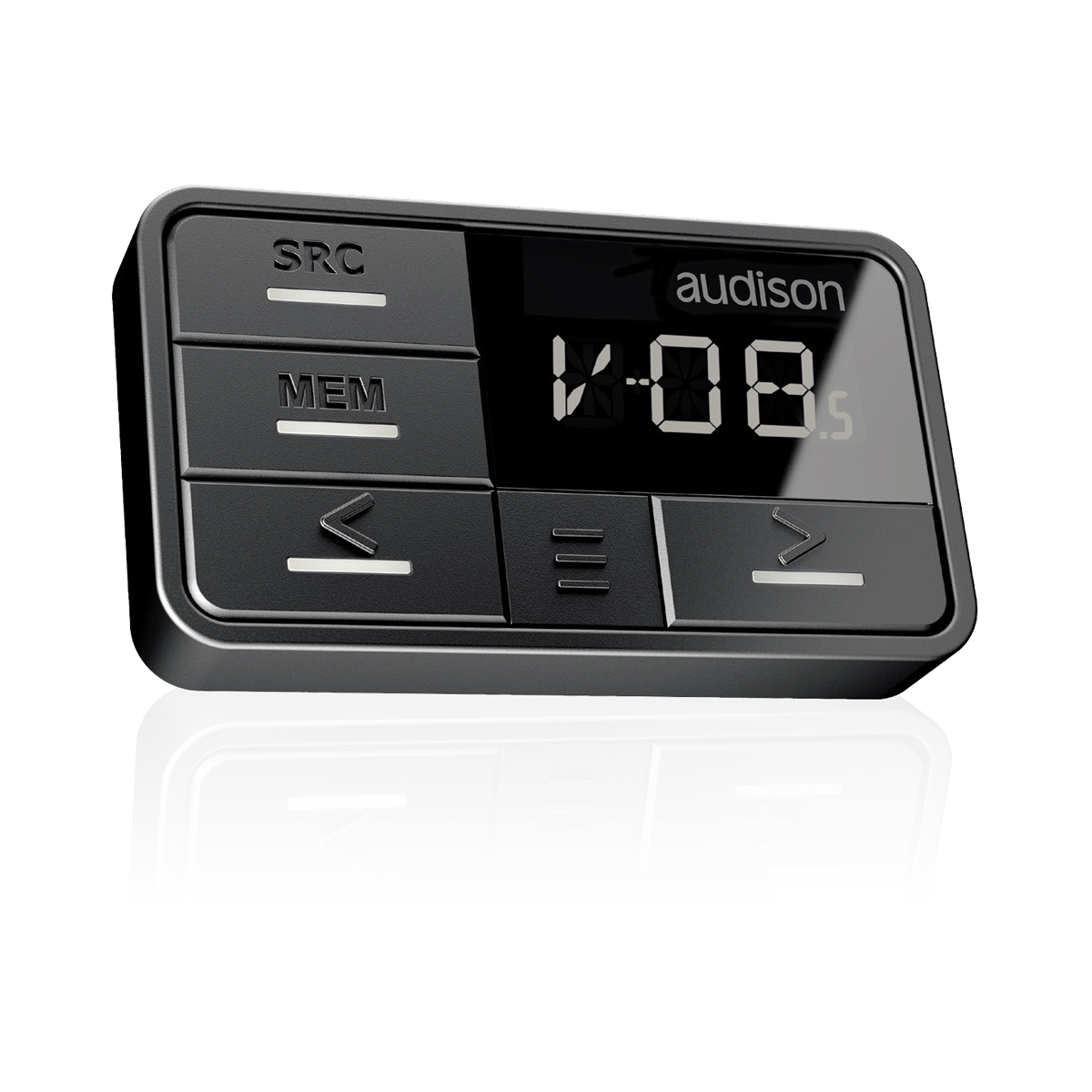 DRC AB enables the main system control (volume, balance, fader and subwoofer volume, bass-boost) without the use of a PC. Thanks to this device, installed in an ergonomic position within the car dashboard, the user can: choose between the four DSP presets and select the source among master, auxiliary and the two optical digital inputs.