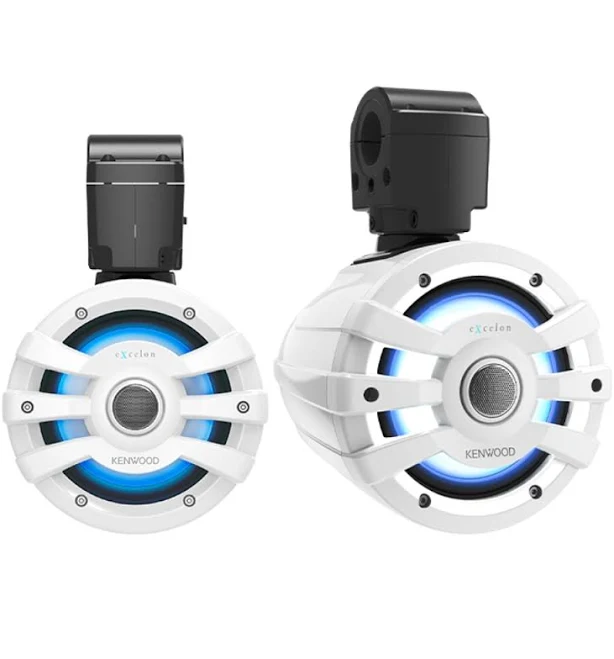 6.5″ marine/powersports tower speakers with bright RGB lighting and waterproof IPX6 rating. Delivers solid audio performance with striking illumination, great for outdoor installs.